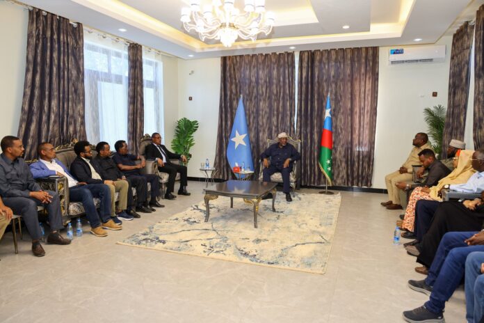 Aadan Madoobe oo ku soo dhaweeyey Baydhabo Wafdi uu hoggaaminayey Hoggaamiyaha ku-meelgaarka ah ee Koonfur Galbeed Jibriil Cabdirashiid Xaaji Cabdi oo ah Ra’iisal Wasaaraha ku xigeenka labaad ee dalka oo dowladdu u magacowday.